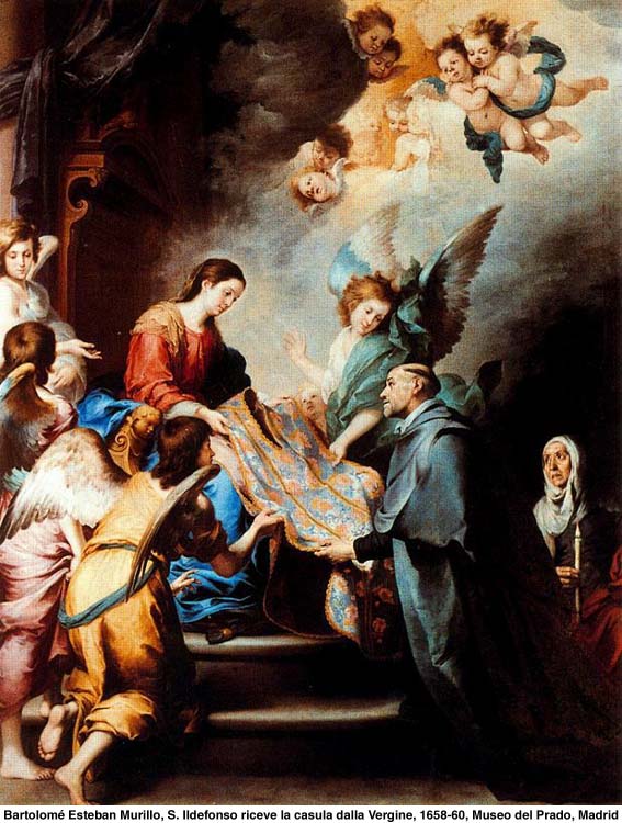 Martyrologe Romain : À Tolède en Espagne, saint Ildefonse, évêque. Moine et supérieur de son couvent, il fut élu évêque et écrivit de nombreux ouvrages dans un style très élégant et honora la bienheureuse Marie Mère de Dieu et toujours Vierge avec un admirable zèle de dévotion.