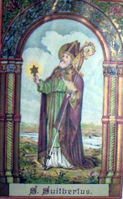 Martyrologe Romain : Dans une île du Rhin en Saxe, l’an 713, saint Switbert, évêque. D’abord moine en Northumbrie d’Angleterre, il devint le compagnon de mission de saint Willibrord, puis, ordonné évêque par saint Wilfrid, il revint sur le continent prêcher l’Évangile aux Bataves, aux Frisons et à d’autres peuples germains et mourut pieusement dans le monastère qu’il avait fondé dans sa vieillesse.