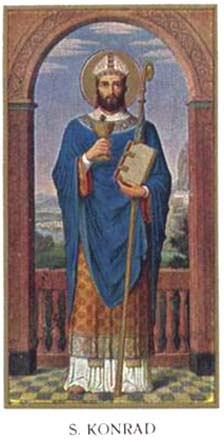 Martyrologe Romain : À Constance en Souabe, l’an 975, saint Conrad, évêque, qui fut un excellent pasteur de son troupeau et fit profiter largement de ses biens l’Église et les pauvres.