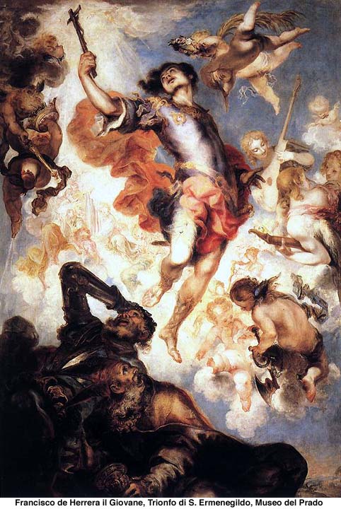 Tiempo después, la segunda esposa de Leovigildo empezó a despertar nuevas sospechas contra Hermenegildo, que fue encarcelado en Tarragona acusado de herejía; se le ofrecía la libertad a condición de que se retractase. El mártir pidió fervorosamente a Dios que le fortaleciese en su combate por la fe, añadió mortificaciones voluntarias a sus sufrimientos y se vistió con un saco, como los penitentes. Al negarse a recibir la comunión de manos de un obispo arriano, su padre lo mandó matar.- Hermenegildo recibió la noticia con gran resignación y murió instantáneamente de un solo golpe de mazo. San Gregorio el Grande atribuye a los méritos de San Hermenegildo la conversión de su hermano Recaredo y de toda la España visigótica.