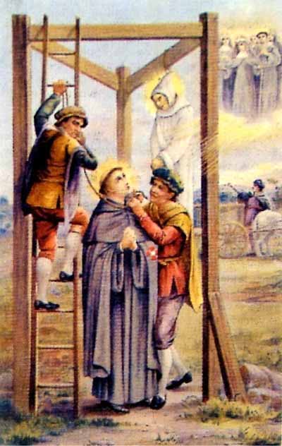 En Londres, en Inglaterra, santos Juan Houghton, Roberto Lawrence y Agustín Webster, presbíteros y mártires, priores respectivamente de las cartujas de Londres, Beauvalle y Axholme, y san Ricardo Reynolds, de la Orden de Santa Brígida, todos los cuales, durante el reinado de Enrique VIII, y después de haber profesado valerosamente la fe de los padres, fueron arrastrados vivos hasta el lugar de su suplicio en Tyburn, donde perecieron ahorcados juntamente con Juan Haile, presbítero, párroco de la cercana localidad de Isleworth (1535).